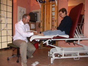 Nous sommes retournés à St Luc pour faire enlever le plâtre (voir la Gazette du mois passé). Ils s'attendaient à devoir examiner un genou plutôt qu'une cheville, ce qui démontre bien leur incompétence (on y avait en effet déjà été pour le genou, mais il y a 4 ans de cela). Après cela, Josette s'est précipitée chez son kiné favori: c'est lui qui travaille, pas elle. Pour être tout à fait honnête, il ne fait pas grand chose, lui non plus: il fait travailler ses instruments.