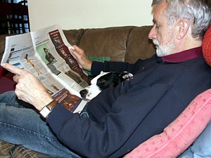 Je lui apprend à lire le journal.
